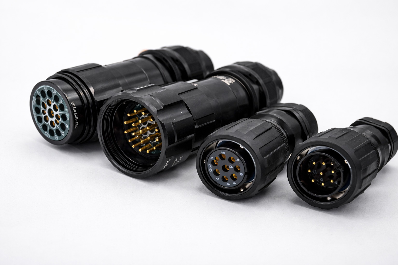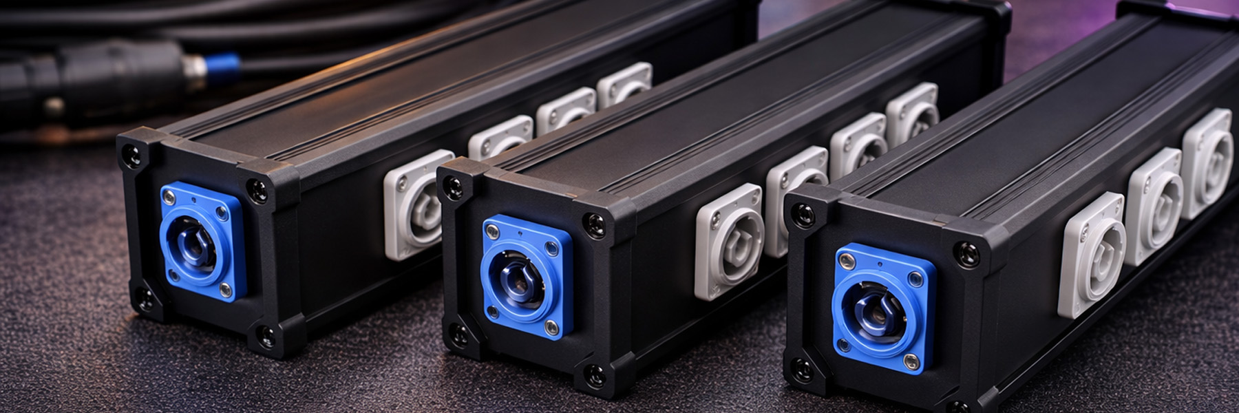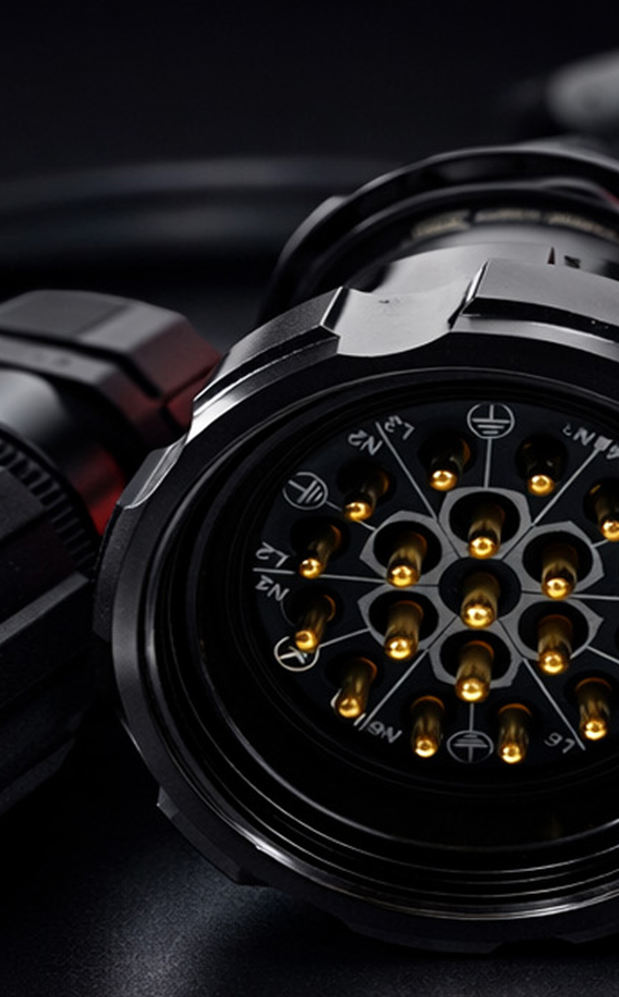 This 19-pin electrical connector is widely used in the set up of portable temporary power circuits for touring events stage lighting. It achieves an IP67 protection rating when twisted. Featuring a soldered connection structure, the connector surface is gold-plated.